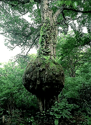 ずいぶん旅を続けてきたけれども、巨木に出会ったときというのはいつもちょっと 怖い感じがするんだよ。でもたまに出会った瞬間に「ぷっ」と吹き出しちゃっう木がいて、それが今回紹介する“コブブナ”なんだ。