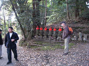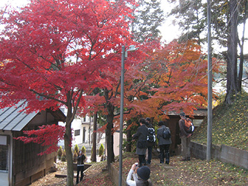 「多摩丘陵ってこんなにキレイなんだ」というのが今回の第一の感想です。武蔵野の大地って、よくいうのですがこんな感じだったんでしょうね。 たき火をしている人がいたり、もちつきをしている集団がいたり、そうした景色の中で田園風景が広がっています。ものすごく気持が優しくなれてとてもよかったですね。晩秋というだけに、今年最後のカエデの紅葉をながめながら、秋色にそまった木々を楽しめました。 今回は、ヒゲ爺こと草間さんが地元ということで、コースなどを詳細に調べていただき、さらに染野さんの実際に現地を歩いてコースを決めています。おかげで本当に心休まるコースになっています。 だんだん、会の方々が詳しい場所を順番に回っていく感じに最近はなりつつあります。場所に関して当然詳しいので、おかげで大変内容の濃いものになりました。 |
