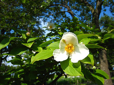 和名はインド原産の沙羅双樹と間違ったことによります。別名、ナツツバキといいます。沙羅双樹は日本には無いので、日本の寺院では代わりにシャラノキがよく植えられています。沙羅双樹はフタバガキ科だそうです。シャラは霧が年中かかっているような空中湿度の多いところが好きな木です。ここ水元公園では燦々と日があたっている所に植えられているため、一緒に植えられた他の木は枯れてしまったみたいです。