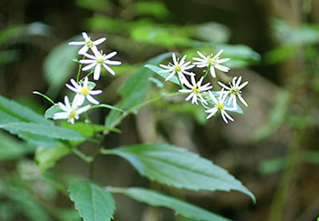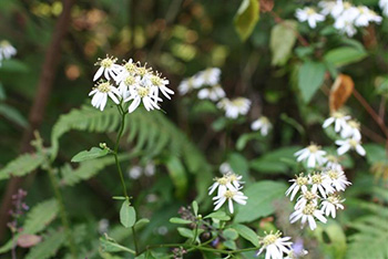 | シロヨメナはこのころに見られる花。山道の側で見られるキク科シオン属の多年草です。 | ノコンギクはヨメナによく似た花。この2つの違いを染野先生から教えていただきましょう! |