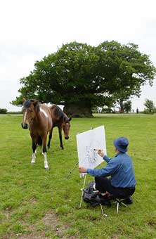 どこに行っても描いている姿を人が見にくるのですが、馬が見に来たのははじめてだそうです。 「大野さん。たまには馬も一緒に描いたらどうですか」 「うーん。ウマく描けねえよ」 |
