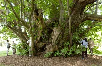 CanFord Schoolにある栗の木の巨木。全員で幹周りをはかったのですが、おおよそで12メートルほどでした。この学校にはこの他、ヨーロッパブナの巨木もあります。ここは全寮制の学校なので、ここの生徒は毎日この木を見ることになります。 |