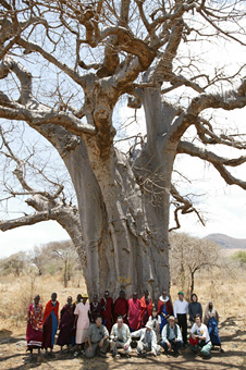 | マサイ族と記念写真です | 南アフリカメッシーナ近くのバオバブです | 鳥取大学名誉教授の小笠原先生もバオバブに登ってご満悦です | ||||||||||||||