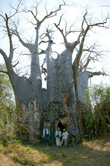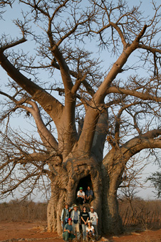 | 総勢8名でいった世界最大級のバオバブです。 どうしても登りたくなりますよねえ。 |