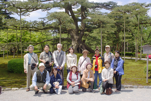| 兼六園で記念写真です。撮影している僕を入れて総勢14名です。 | |||||||||||||||