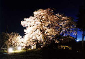 箕輪町にある「中曽根の権現桜」です。満開時にはライトアップされるそうです。高遠のサクラが散ってしまっていたら、これを見に行こうと思っています。 |
