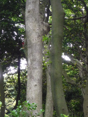 雄島のヤブニッケイ林。橋でつながっている小さな島です。ヤブニッケイ、タブの木,シタジイなど照葉樹林に覆われていて,その植生は縄文時代のまま残されているそうです。