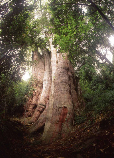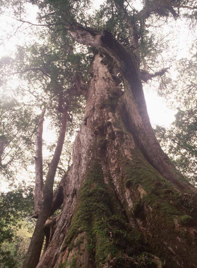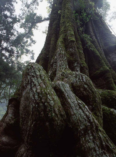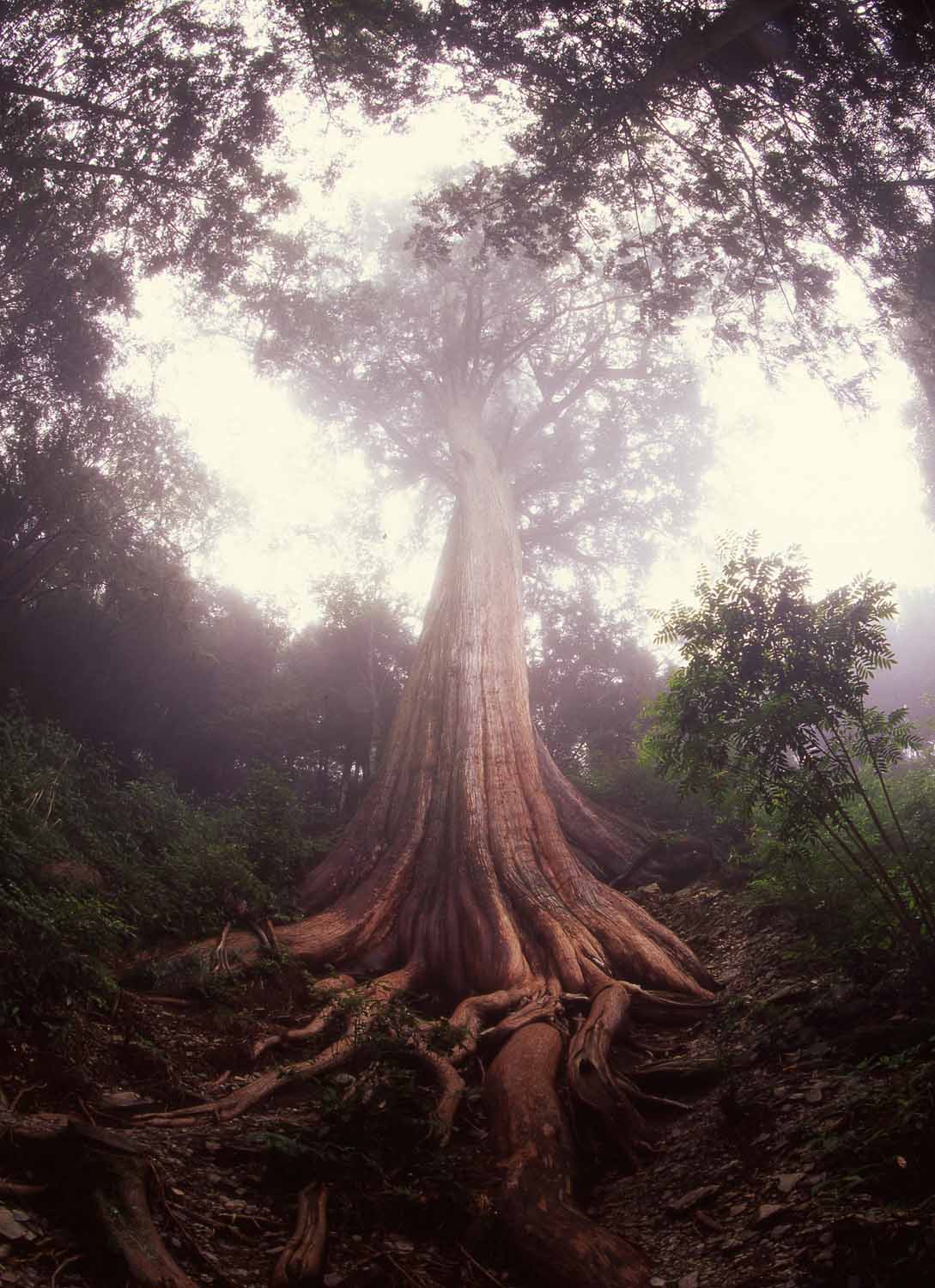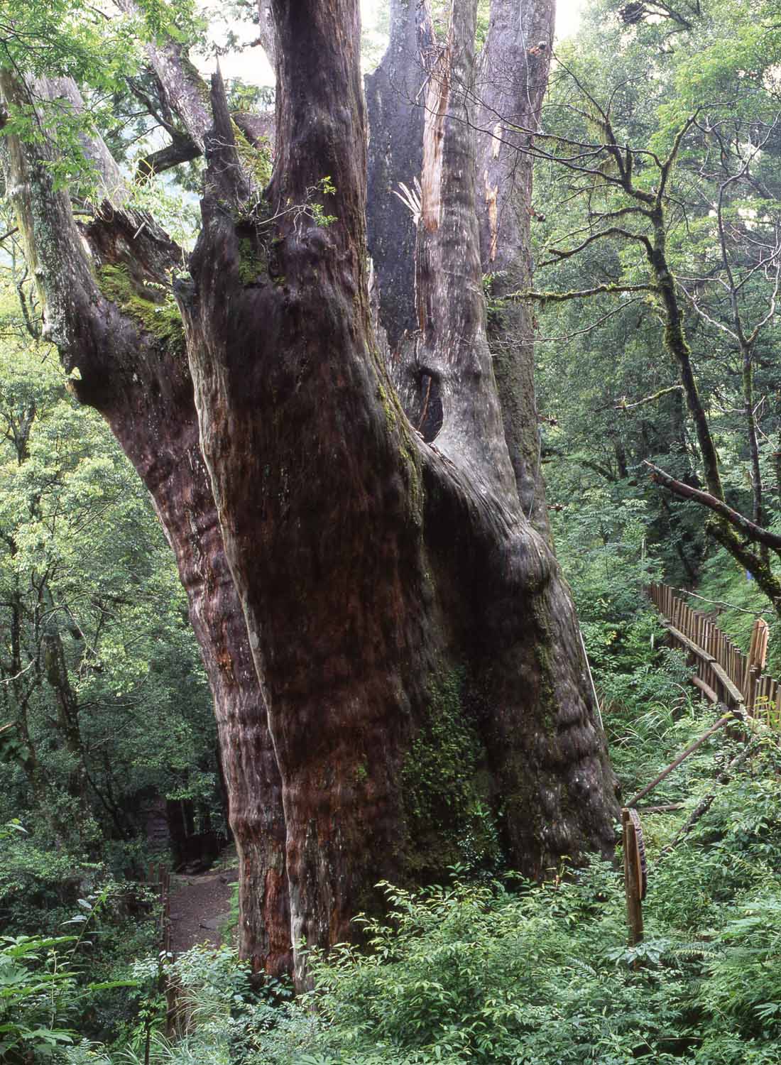 台湾のヒノキの巨樹は日本の神社仏閣に使われてきた。銘木の産地だったことを物語るように、ここには日本のヒノキをはるかに凌ぐ巨樹が残っている。
