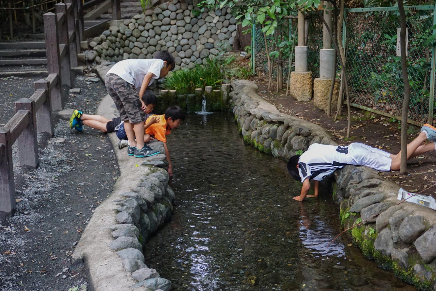 その後、国分寺跡の方に散策。道すがら、ヤグルマギクをみたりしながら歩きましたが、尾張藩が鷹狩りをしたという「お鷹の道」を歩きました。ここは綺麗な水が流れているところで、蛍もでるそうです。この日はとても暑かったので、風が吹くと、この川もの涼しさと同時に、ひとときの涼を楽しみました。
