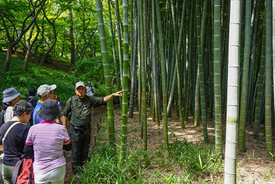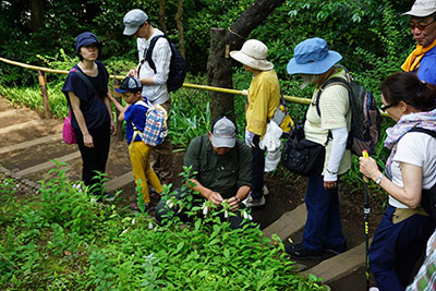 梅雨に入っての開催になるかと雨の心配をしていたのですが、当日は天気に恵まれ気持ちいい散策になりました。最初に尋ねた、殿ケ谷戸庭園は、ここは都内なのかと思わせる静かな空間でした。それも国分寺の駅前なので、とても驚かされました。ここは傾斜地になっていて国分寺崖線とよばれ、多摩川が武蔵野台地を削り取ってできた段丘の連なりです。この崖線は国分寺市内から多摩川を下って大田区の方まで実に30kmにもなるそうで、話を聞いて驚きました。崖下には地下水が湧き出しているところもありました。「ハケ」と呼ばれるそうです。