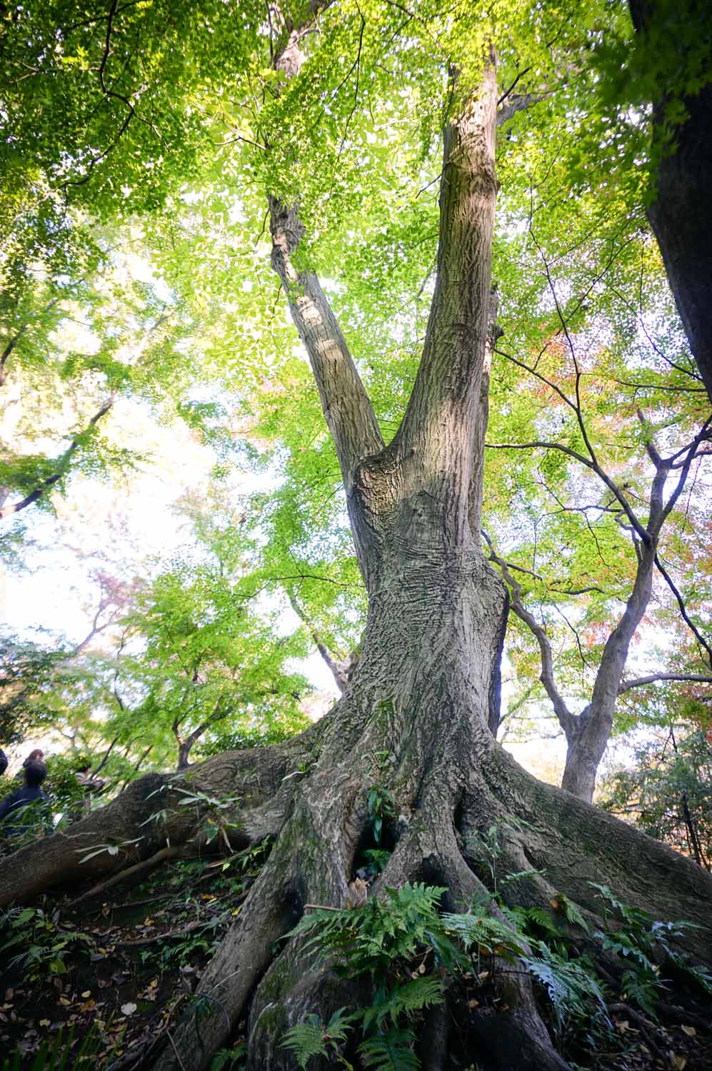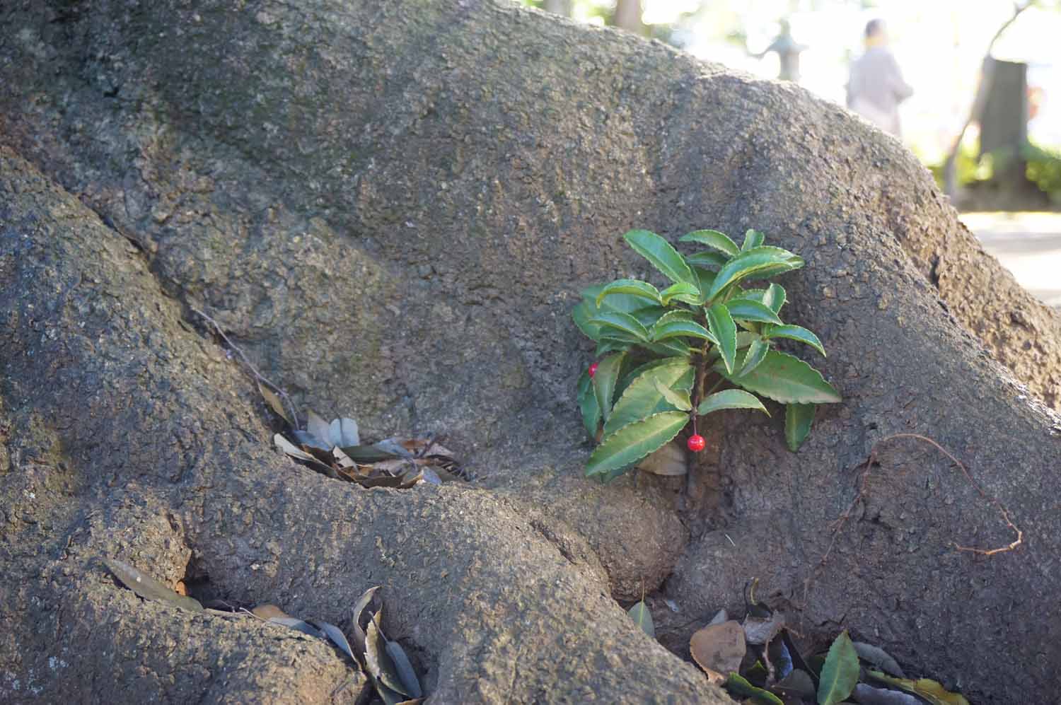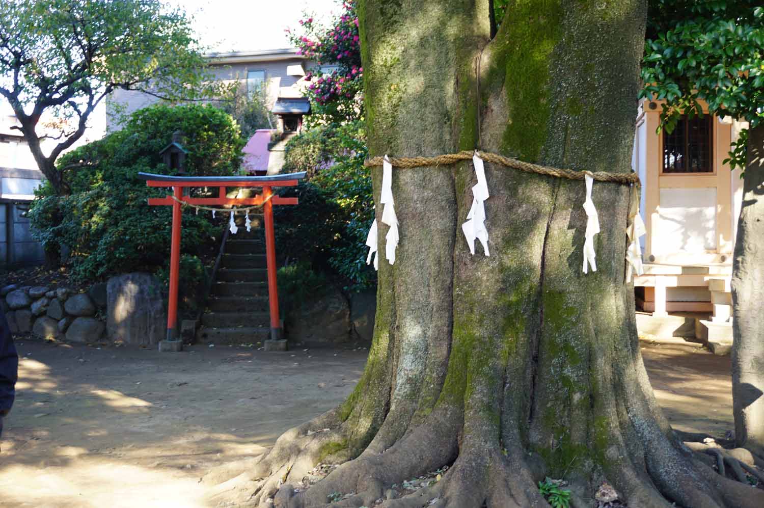 最初に伺ったの、和田堀稲荷神社。ここには、都内でも有数のシラカシがあります。樹高18m。幹回り3.8m。どんぐりを探しましたが、この時期にはもうありませんでした。