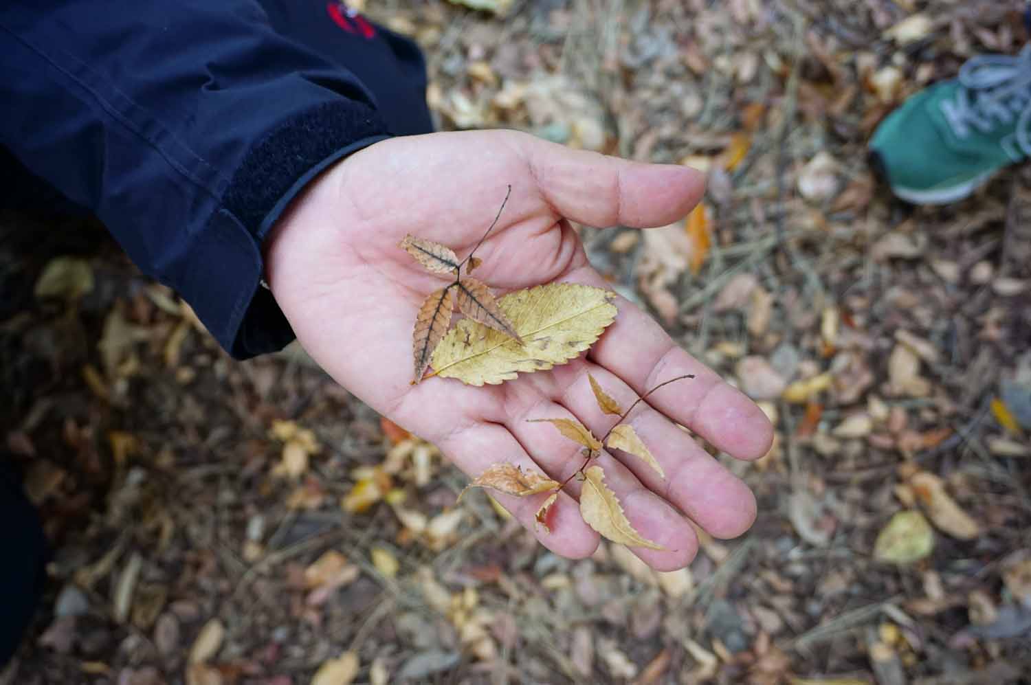 ミズキの巨木もありました。樹高16m、幹の太さは2.2mとそこだけ聞くと大したことないのですが、枝ぶりが綺麗で石神井公園の中では訪ねたい一本です。ケヤキの、葉っぱ。以前教えてもらったように、水辺の近くにある木なので、違う環境だと、タネを飛ばそうとプロペラ型の葉っぱをつけてタネを飛ばす。いい環境だと、まわるいすぐ下に落ちる葉っぱを作る。そんな葉っぱも見つけました。