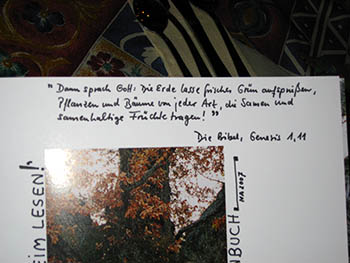 全員の本にサインと一緒に聖書の言葉がかかれていました。ドイツ語なので読めませんが、通っている教会の牧師さんがドイツに留学されていた方なので今度聞いてみることにします。樹にまつわる聖書の言葉なんて知らないですものね。