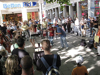久しぶりの都会です。ミュンヘンは賑わっていました。多くの市民の方たち、大道芸の人、たくさんの観光客。こうした、田舎の方が好きで、巨木や美しい森を見てまわるのに喜びを感じている我々ですが、しばし都会の楽しさも味わいました。