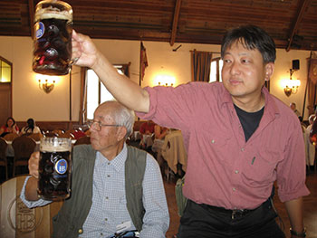 染野さん、蟹江さん、岩田さん、濱野さんなどが飲んでいるのはあたり前なのですが、この頃だんだん、大野さんが飲むようになってきて、だんだか楽しいです。すぐ赤くなりますが、この時は1リットルのジョッキを持って乾杯してました。