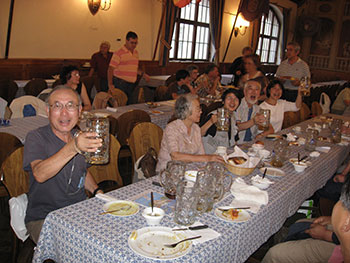 ミュンヘンにくる観光客の定番的な場所ですが、ビヤホールに行きました。ホールブロイハウスです。ヒットラーがここで演説したんだそうですが、いまは、大騒ぎする所といった感じです。地元の音楽や、フォークダンスなどを見せてくれて、とても楽しい時間を過ごしました。ここで、家の母が踊っているのは久しぶりに見ました。びっくりです。