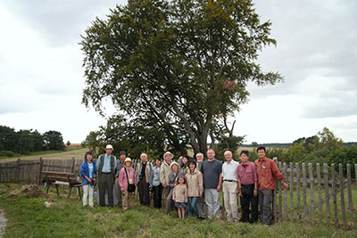 僕にとって、今回のツアーでいちばん考えさせられた樹はこの樹だと思います。このヨーロッパブナはヨーロッパでもかなり有名な樹で、雑誌GEOの表紙を飾ったりしていました。普通、森の中ではこのような美しい形にはなりません。周りが牧草地だからこのようなキレイな形になるのでしょう。ブナですので、落葉します。四季を通して、その姿を変え、多くの人たちに愛されてきました。しかし、老齢で、しかも病気であることがわかり、保護する声と、そのまま自然に任せてほっておくのと、どちらがいいか地元で議論されました。結果的には、自然に任せることになりました。