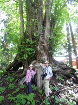 最初に訪ねたのは高山市にある水無神社です。境内には大きな杉がありました。神社の裏手に大きな桂がありました。