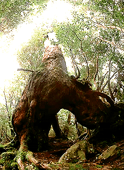 くぐり杉 もくもくと森を歩いた。 ふと誰かに出会った気がして見上げると、 ただ大きな木が黙って立っていた。 また歩きだすと、ずっと昔に一緒に遊んでいた 背の高い子のことを 思い出していた。