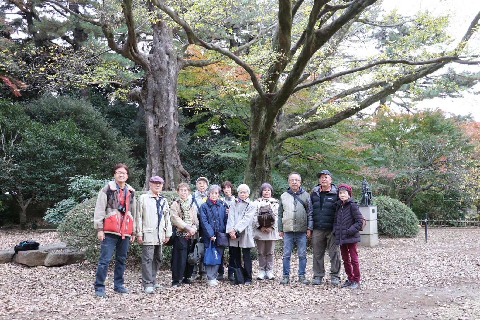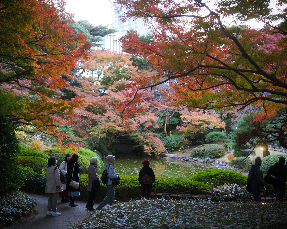 その後、東京都庭園美術館の庭園へ移動しました。ちょうど紅葉の見頃を迎えており、鮮やかな赤や黄色に染まった木々が私たちを迎えてくれました。自然教育園の落ち着いた森の風景とはまた異なり、季節の華やかさを存分に味わえる時間となりました。