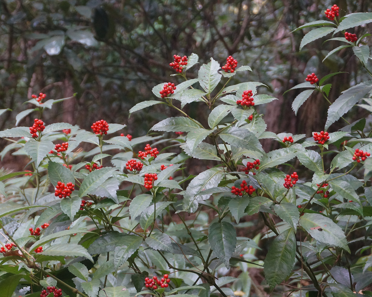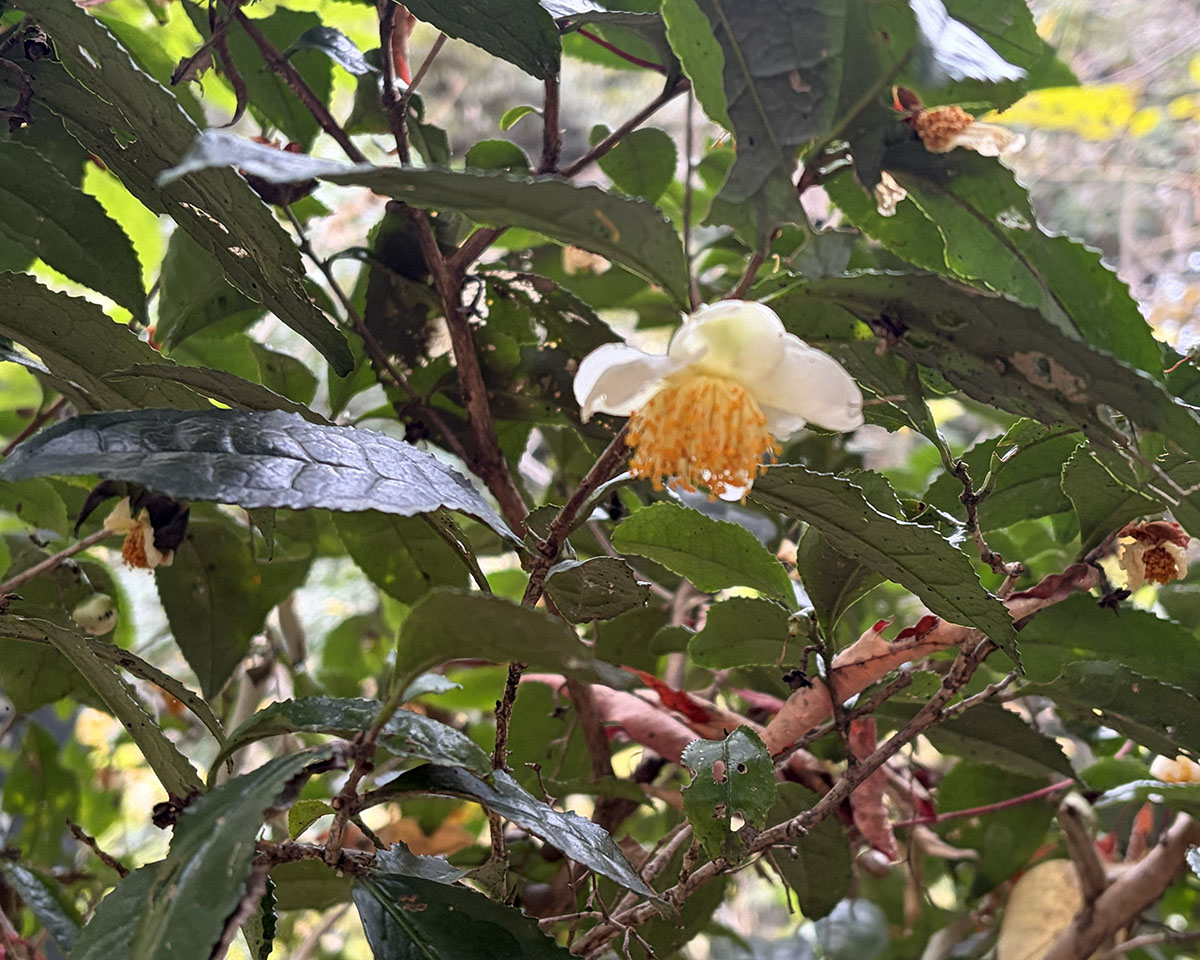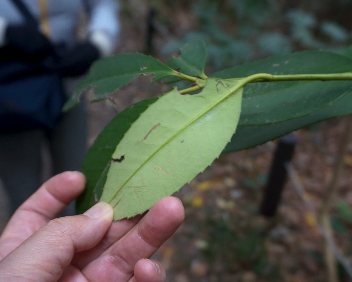 いつも通り、歩きながら講師の方のお話を聞きます。目の前にある植物の名前や、その植物が季節ごとにどのような姿へと変化していくのか。サネカズラ、ニッケイ、ムクロジなど、これまで何度も耳にしてきた名前が次々と出てきますが、実際に植物を前にすると、なかなかすぐには結びつかず、自分の記憶の曖昧さを実感します。そんな中でも、センリョウやマンリョウといった植物は、どうにか記憶を辿ることができ、少しだけ安心しました。