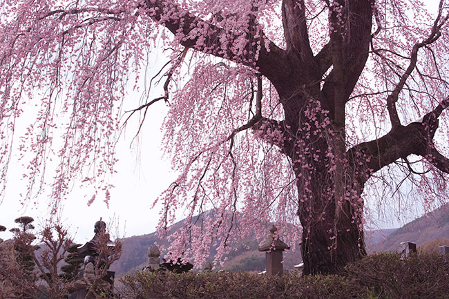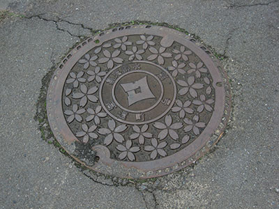 | 高遠城の桜は終わってしまっていたのですが、すぐ近くにあるこの枝垂れ桜はこの時が満開。ちょうど良い時に出会いました。枝ぶりも良いし、人も少ないし、とても楽しむことができました。 ふと気付いたのですが高遠ではマンホールのフタも桜のデザインでした。 |